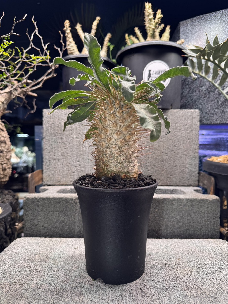 本種はパキポディウム属の中でも極端に根を弄られるのを嫌う種という印象がございますので抜き苗ではなく鉢植えのままお届けいたします。