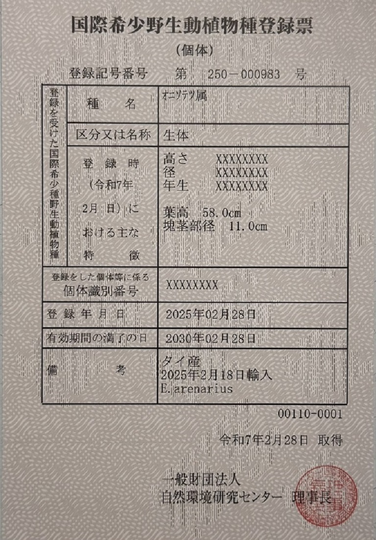 【国際希少野生動植物種登録番号250-000983号】