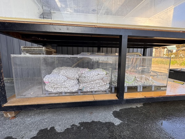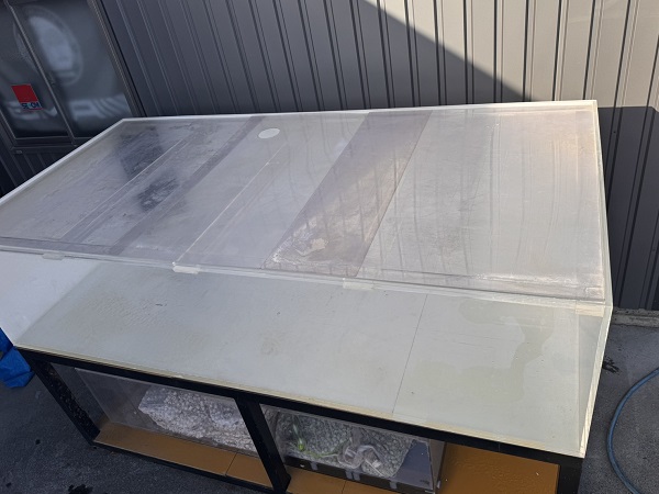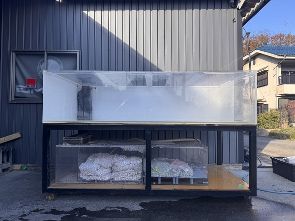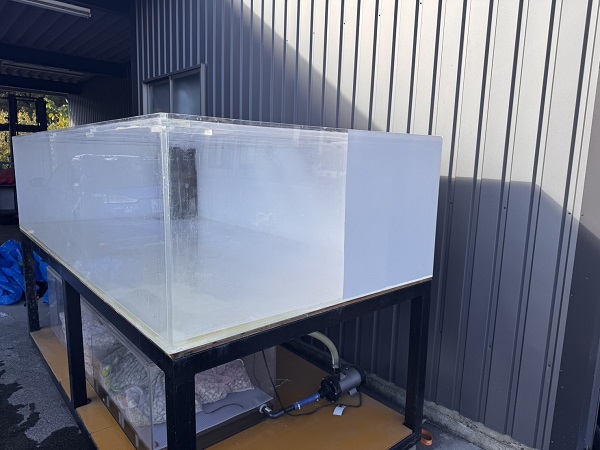 2400/1200/600サイズアクリル水槽13/10mm・背面・左面・右面(右面のみ約600)白シート張り。